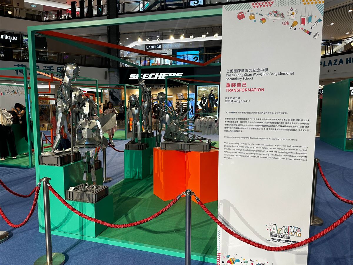 陳黃中四視藝同學設計的立體機械人,由即日起至7月5日,於荷里活廣場公開展出,每隻機械人都是獨一無二設計,我們的意念是Transformation, 由每位學生的個人意念發展而成。開幕禮當日,由同學親自向嘉賓介紹自己的創作,感謝各位同事、學生於展期內到場參觀及支持。