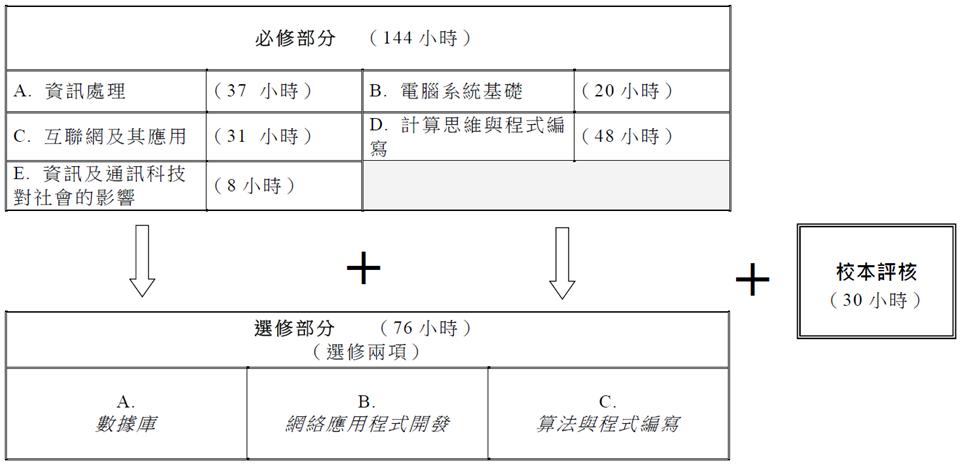 - 理論性: 學習實際使用外,本課程十分著重學生的基礎概念,特別是能夠和高中的電腦科能夠順利銜接和延展;所以,課程也需要學習電腦系統方面的理論性的知識。