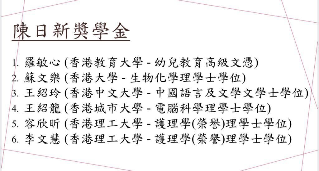 陳日新獎學金得主